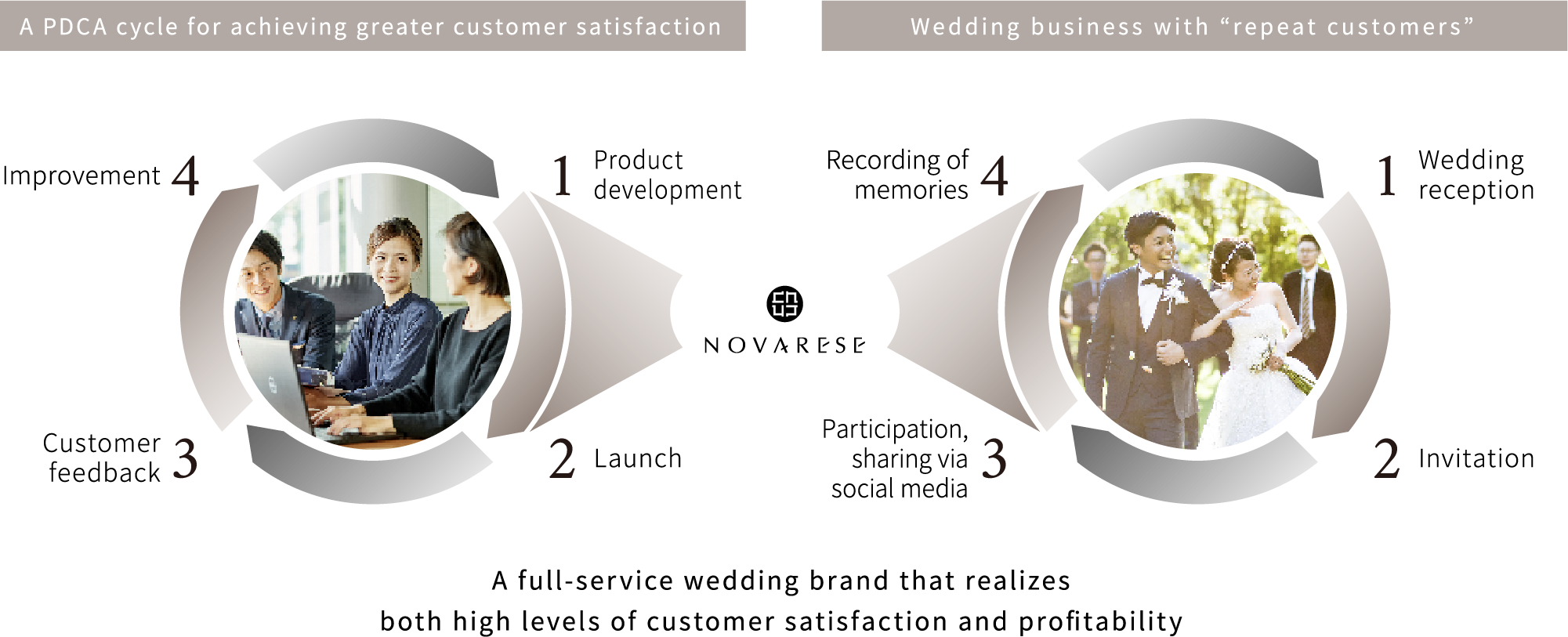 Through internalization of wedding-related services, we have created a PDCA cycle from product development to service launch and improvements reflecting customer feedback. Based on our awareness that wedding attendees are also potential customers, we have created a positive cycle model in which our weddings are rated highly by the guests who attend them, leading to the attraction of new customers.