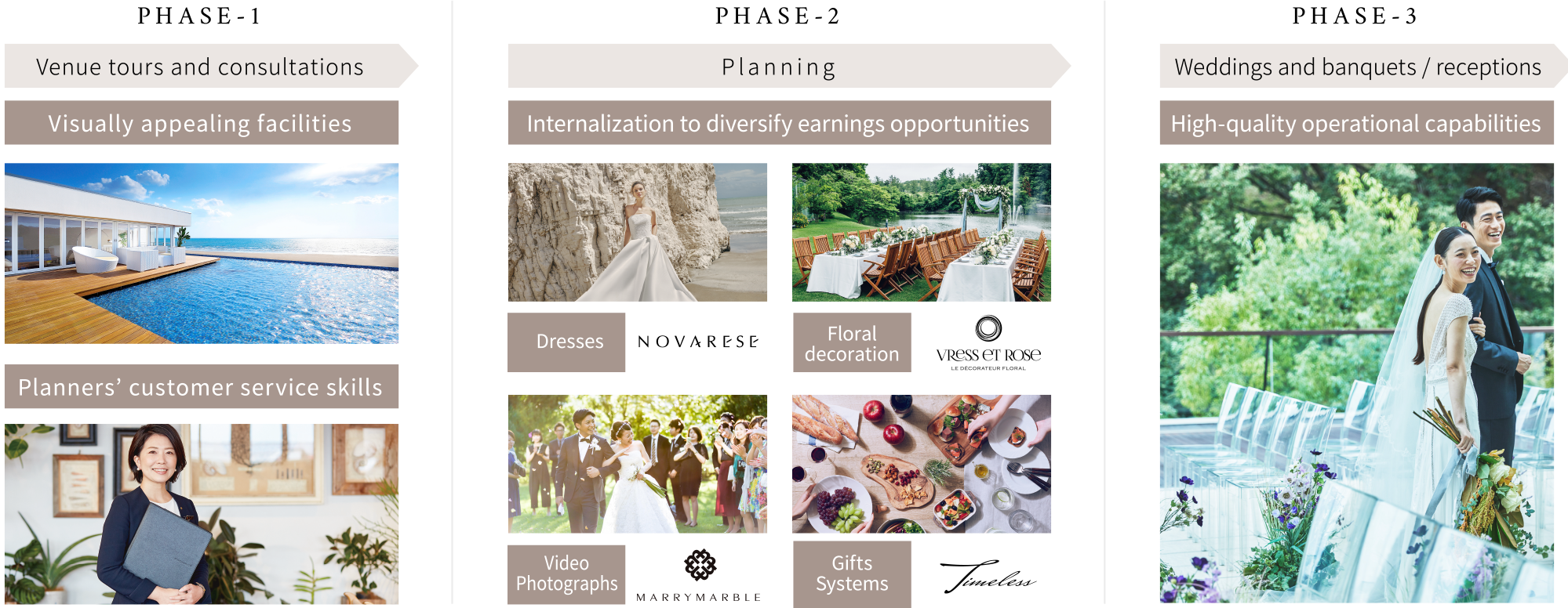 Although we have strengths in each phase from initial venue tours to the actual wedding day, our greatest strength is in our internalization of wedding-related businesses, which differentiates us from our competitors.