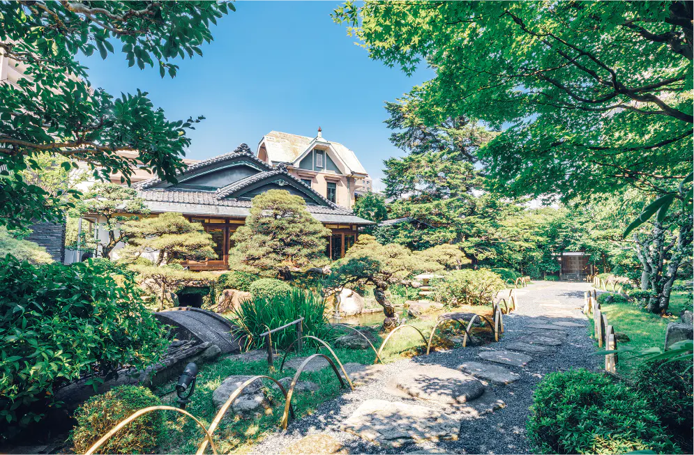 - 1946年に料亭旅館として開業した昭和初期建築の和洋折衷デザイン建築物