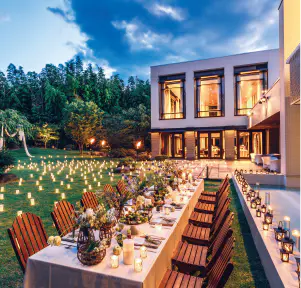 ゴージャスな欧米風施設が多い中、シンプルでモダンなデザインと貸切型婚礼施設をベースとした店舗戦略により国内他社の少ないブランクスペースで事業を展開し、支持されています。