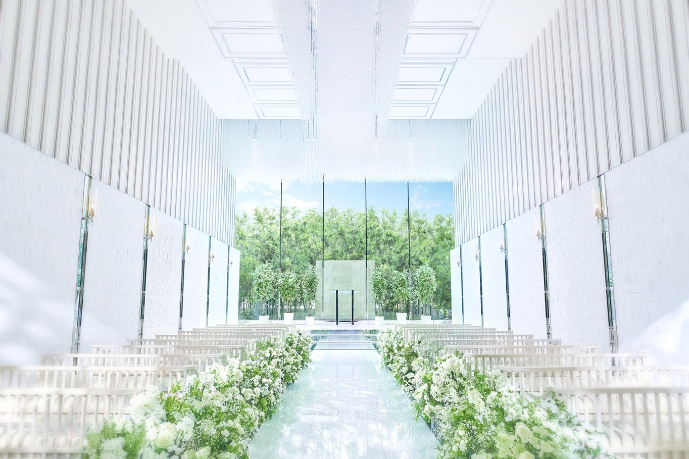 自然光がやわらかく差し込むチャペルは、透明感あふれる洗練されたデザインが特徴。