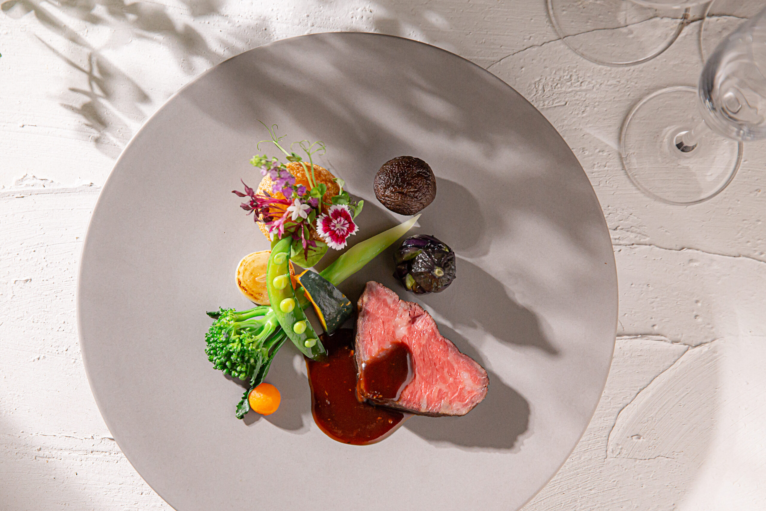 私たちの料理は、季節の移ろいや新郎新婦様の想いに合わせ、一皿一皿にストーリーを込めて提供します。