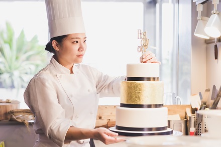 結婚式でのウエディングケーキの制作を担当していただきます。 ドレスや会場に合わせた16のコンセプトからなるウエディングケーキのデザイン・監修を自社内で行っており、デザイン性の高い上質なオリジナルケーキをご提案できるよう、新作メニューの考案にも力を入れています。