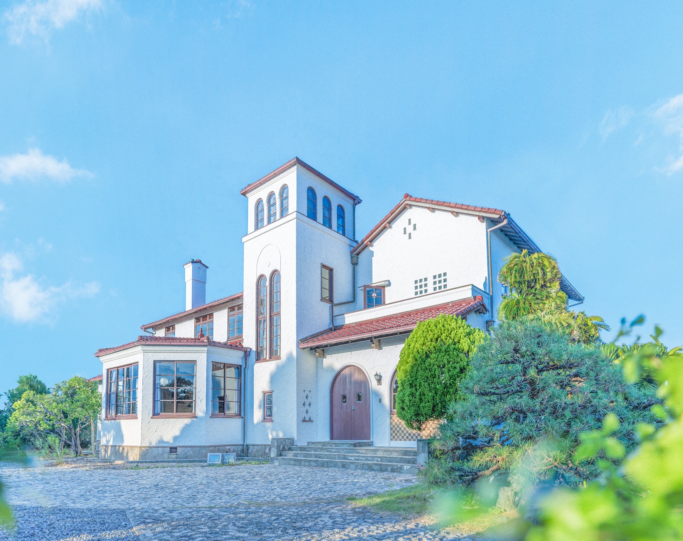 静岡市の歴史と文化を今に伝える国登録有形文化財の洋館で、1940年に建てられました。赤瓦の屋根と白壁のスパニッシュ様式が特徴で、正面には駿河湾の絶景が広がります。館内は、光が踊るガーデンやコリドーを通じ、自然と建築が調和した美しい設計となっています。この歴史ある空間で、おふたりの新たな物語が始まります。