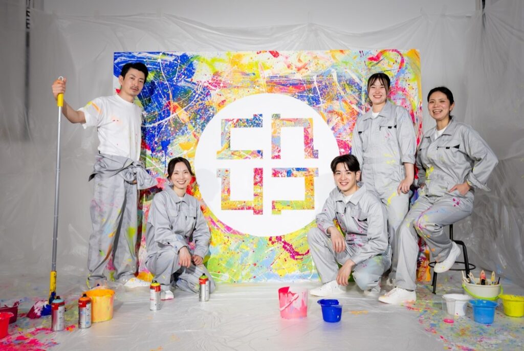 社員一人ひとりが、自身の願いや想いを色に託して、真っ白なキャンバスに思いきりぶつけていく様子を描いています。