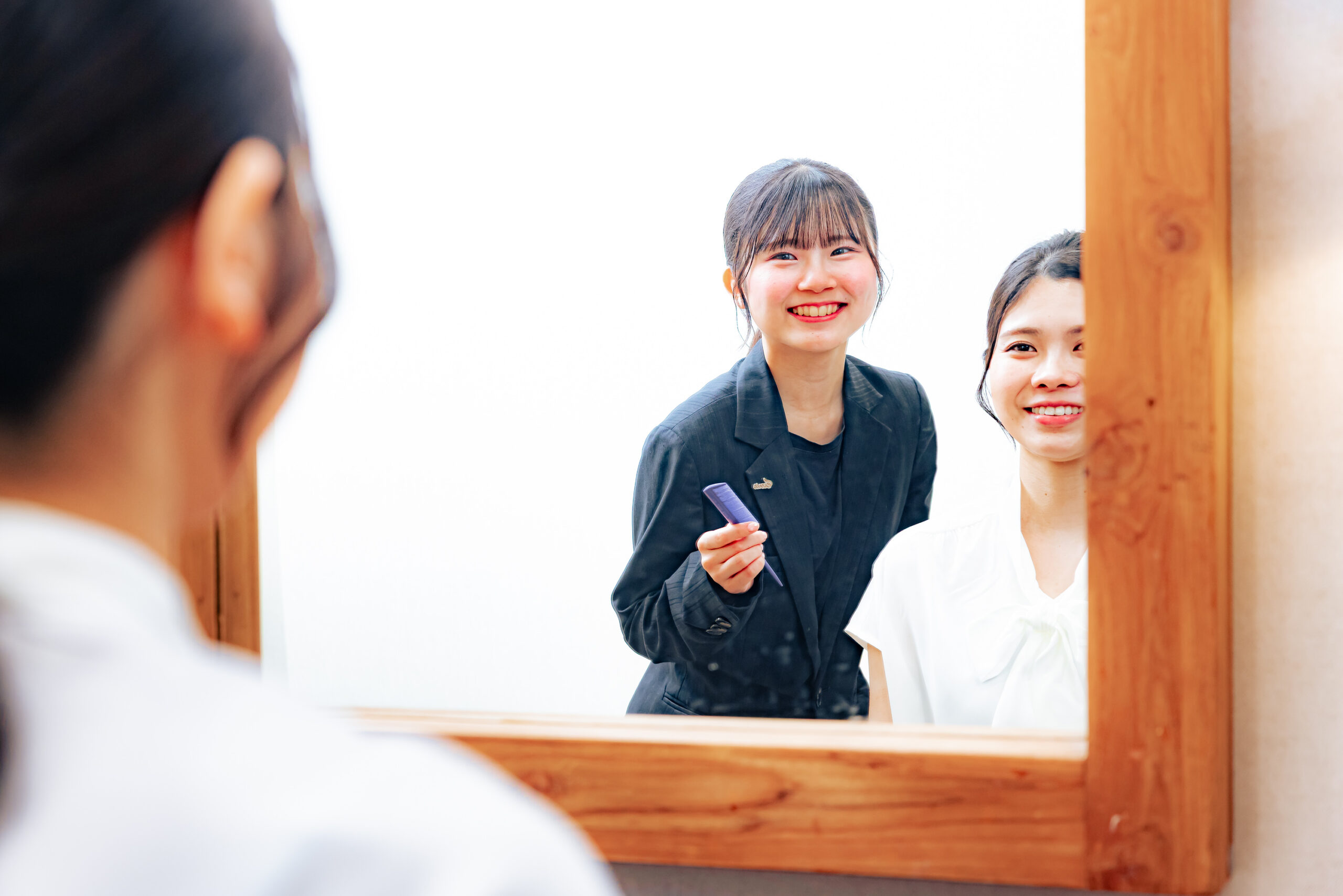 もともとブライダル業界に興味があり、当初はウエディングプランナーを志望していました。しかし、将来を見据えたときに「手に職をつけたい」という思いが強まり、専門的なスキルを身につけられるヘアメイクの道を選び、専門学校へ進学しました。学ぶ中でヘアメイクは単に美しさを整える仕事ではなく、お客様の想いや個性を引き出しその人らしさを形にする仕事であることに魅力を感じるようになりました。その中でオンザページに出会い、施術だけでなく結婚式当日の新郎新婦に寄り添いアテンドまで一貫して関われる体制に強く惹かれました。ヘアメイクとして技術を提供するだけでなく、おふたりの一番近くで一日を支え続ける存在でいられる。その関わり方に価値を感じこの環境で成長したいと考えました。また、選考過程で出会った社員の温かく誠実な人柄にも惹かれ、「この人たちと一緒に働きたい」と感じたことが、入社の決め手となりました。