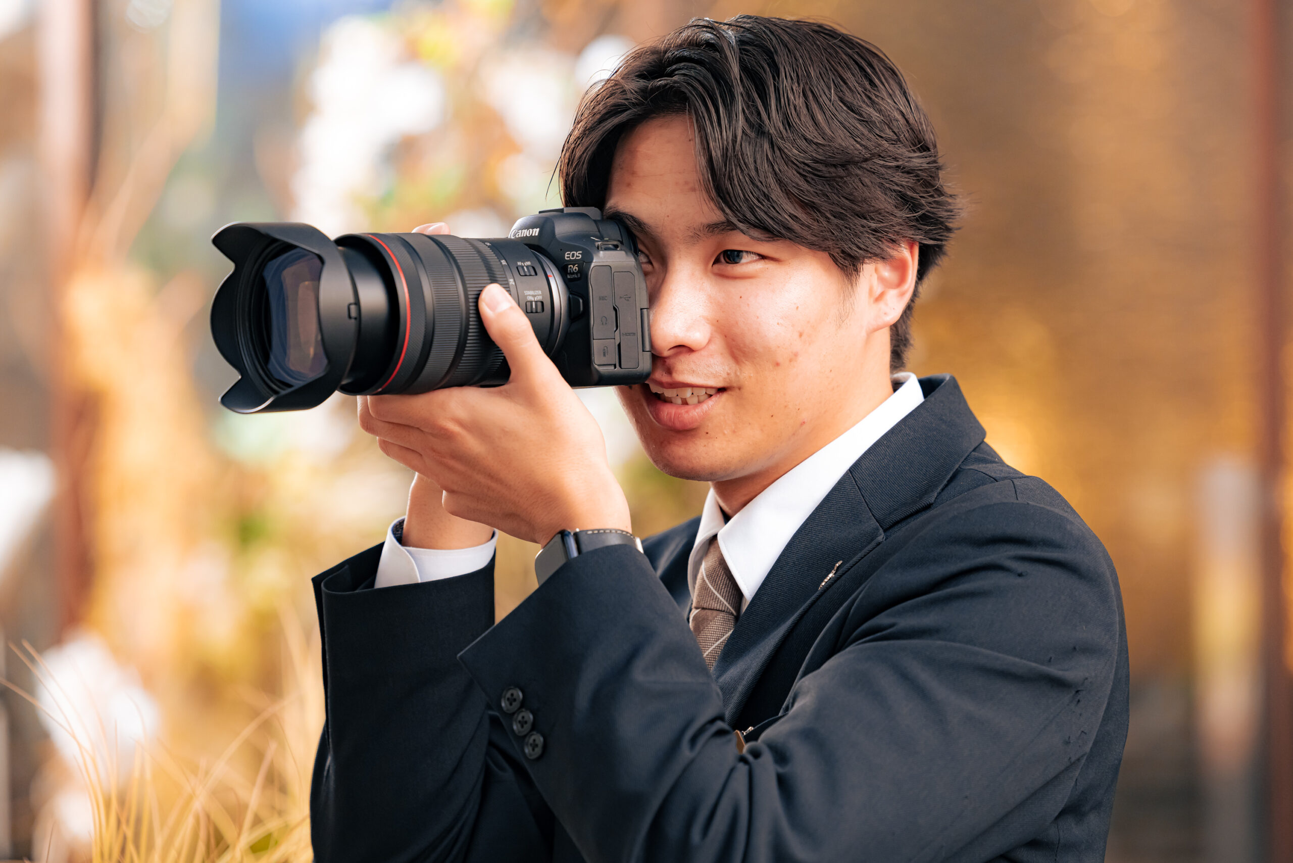もともと結婚式に興味があり、学生時代にはブライダルのアルバイトも経験していました。さらに、趣味で続けていたカメラを活かしたいという思いから就職先を探す中で、「結婚式×カメラ」という仕事に出会いました。数ある選択肢の中でも、結婚式という特別な一日を“記録として残す”ことができる点に大きな魅力を感じ、この仕事を志すようになりました。オンザページは、カメラマンとしてのキャリアを築ける環境が整っていることに加え、人の雰囲気や働きやすさ、評価制度、給与面などの福利厚生も含めて自分に合っていると感じ、入社を決めました。自分の好きな「カメラ」を通して、誰かの人生の大切な瞬間に関わり、それを形として残していく。その仕事に魅力を感じたことが、いまのキャリアの原点になっています。