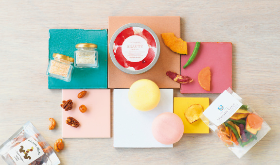 結婚披露宴の列席者に向けて、新郎新婦より贈る引出物を提供しています。商品は流行とコンセプトに合わせて年に一度見直し、常に新しいブライダル商品をご提案。仲介業者を通さず、ほとんどをメーカーから直接仕入れるため、他社にはないアイテムや独占ブランド、有名ブランドとのコラボレーション商品など、オリジナリティーの高い、高付加価値の商品を提供しています。