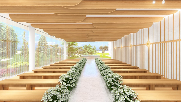 青島を望む披露宴会場、「鬼の洗濯板」を模した内装デザイン、宮崎らしさ表現 完全貸し切り型の婚礼施設をオープン、4/15から稼働