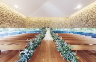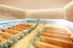 滝に囲まれたチャペルで“水の国”表現、玄関に県花「リンドウ」モチーフの大型照明 。“熊本らしさ”随所に取り入れた、完全貸し切り型の婚礼施設を熊本市で7/7開業