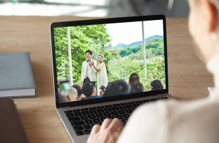 結婚式場「Zoom」で見学可、テレビ会議システム導入。緊急事態宣言解除の17県20会場で「オンライン内覧」のサービス開始。会場と新郎、新婦、親族をネットでつなぎご案内。
